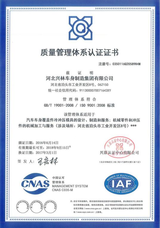 2017年3月1日,我們順利獲得了ISO9001:2008質(zhì)量管理體系認證書的擴大范圍認證,此次認證順利通過標志著公司在新產(chǎn)品的質(zhì)量管理方面已經(jīng)取得較為顯著的成績。質(zhì)量管理體系認證范圍的擴展預(yù)示著興林集團對產(chǎn)品質(zhì)量、管理水平、企業(yè)文化、市場信譽等方面的工作提供有效的保障,也為公司資質(zhì)申請及升級奠定基礎(chǔ),對提高企業(yè)的經(jīng)濟效益具有重要的意義。